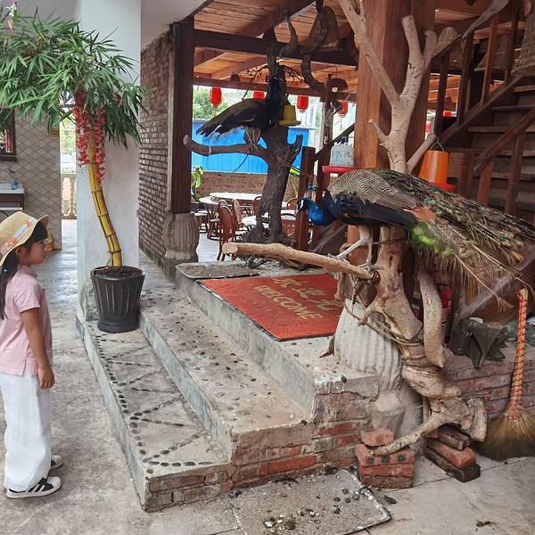 提前做了下功课,主要有曼掌村、曼远村(向往的生活拍摄地)、曼丢村~我们选了曼掌村,这里有很多适合小朋友的活动,可以感受造纸、傣陶、抓鱼~村口的一家饭点店养了两只孔雀🦚