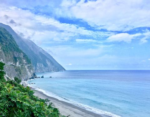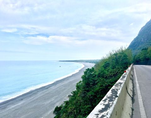 ...在崇德海滩到清水断崖的中间啊,其实可以一路走过去的,但是因为是鹅卵石沙滩,就没有走,一路都很美
