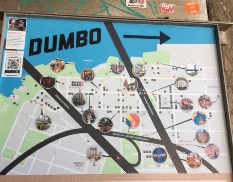 由早期荒废的建筑物是目前成为艺术区,dumbo是欣赏当地艺术的地方,这里的墙壁上涂上各种艺术画值得欣赏。设有咖啡厅和甜品店,坐在露天座椅品尝美味的咖啡,享用充满艺术画。