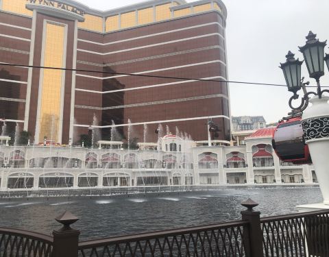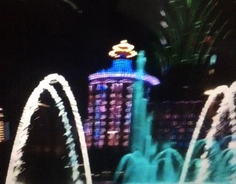 坐落在澳门半岛的永利皇宫度假村,大门前建有一座巨大的池塘。每天定时进行音乐喷泉表演,大致一小时有两次