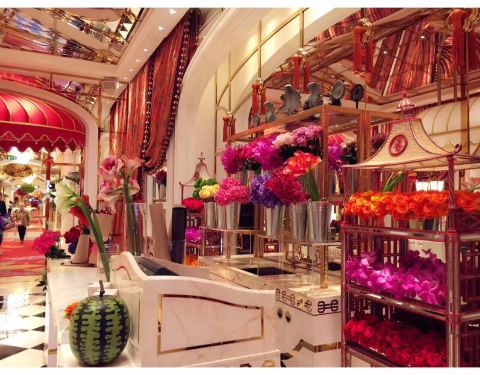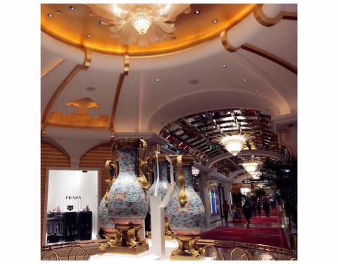 白天是看不出喷泉的漂亮,还是到了晚上才能欣赏它的美,大概20分钟就一场,搭配着动听的音乐,灯光变幻,喷泉跌宕起伏,像是在跳舞一样,而且还出现水货相融的画面,虽然表演时间不是太长,游客都是高举手机拍下那漂亮的一刻,永利里面也是富丽堂皇,可以看看属于它的代表作。