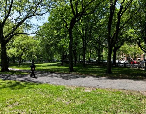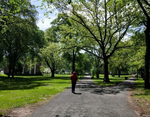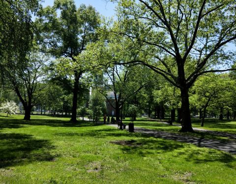 耶鲁大学中央公园又被叫做纽黑文绿,是一个非常有名气的小公园。这片绿地的覆盖面积还是蛮大的。 进去里面感觉空气也很好,负离子指数也高。人也精神多了,放眼望去,四周都是古老的校园,不过这边停车不是特别的方便。