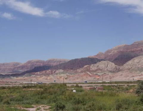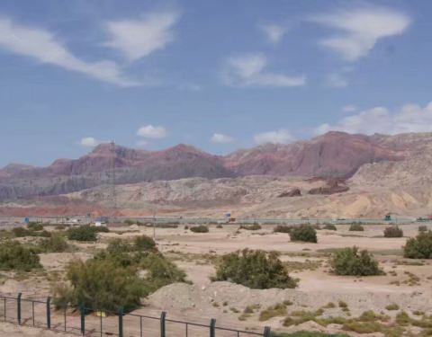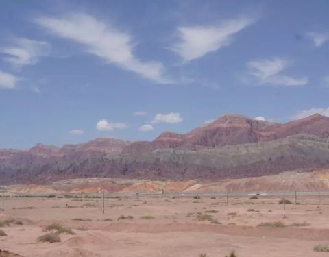 非常壮阔的自然景观区,奇特、壮丽的山系横亘在广袤的南疆大地,山体因岩石所含矿物成分不同而展现出不同的色彩,连绵百多公里,一眼望不到头。