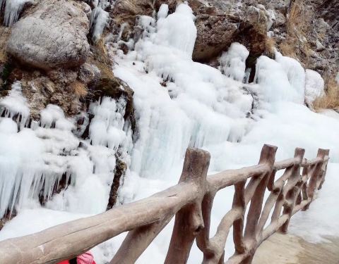 阿图什大峡谷在阿图什郊区,这里群峰林立,山势陡峭,如斧劈刀削,河水和瀑布因为天气原因结成冰,和...