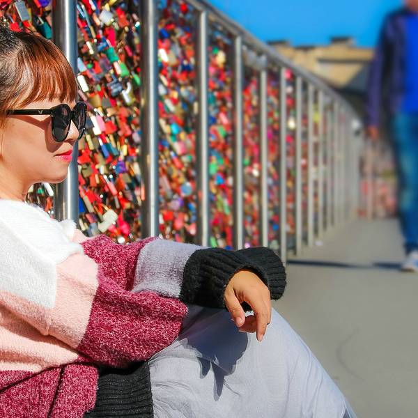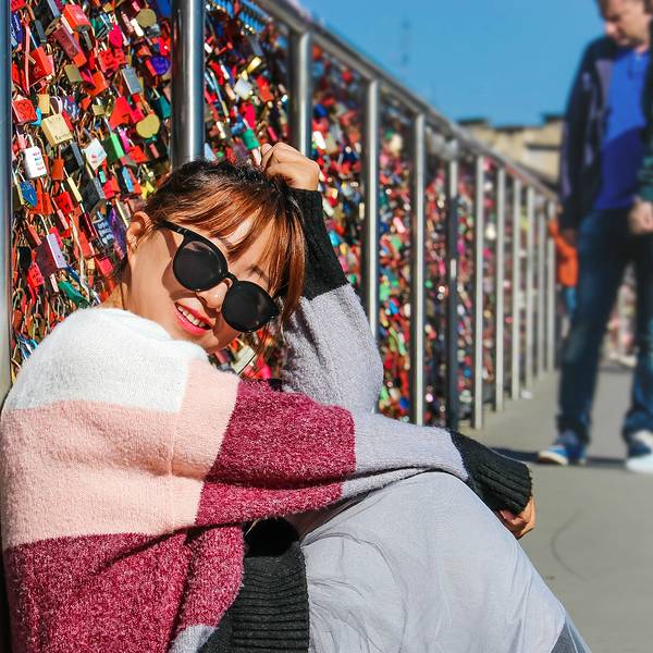 其实这个桥本身就是一个非常普通,没有什么造型和历史的行人桥,只不过这个桥的两侧的桥栏杆上挂满了各种各样的同心锁,所以还是成了当地的一个打卡地。