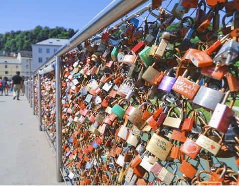 在萨尔茨堡的”情人桥"上挂一枚同心锁,拥有浪漫的爱情回忆。