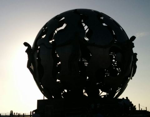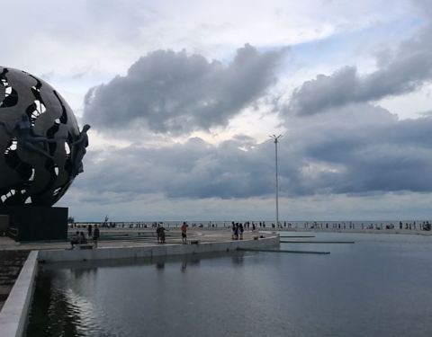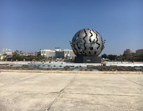 就是银滩上面最标志性的一个建筑物,天气预报上面,就是这个建筑物图片。本来银滩广场这里的喷泉还是很乱的,听说和音乐起舞的事,现在一般都不怎么开了,而且里面放的水被小朋友们玩成了游泳池,走过来的时候顺...