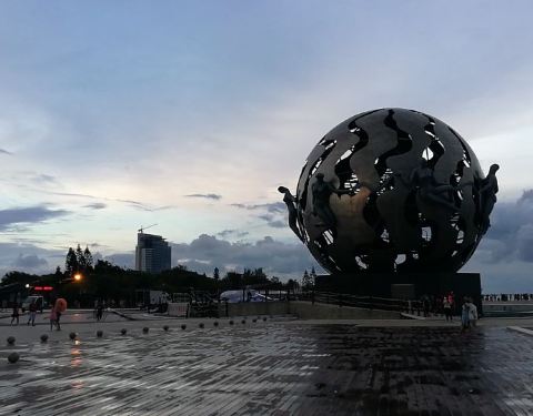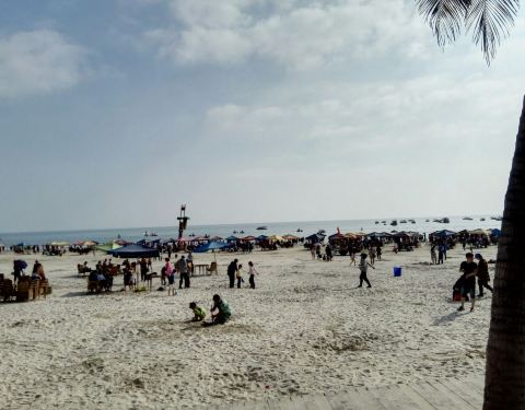 这里还是很值得去的,有美丽的银色沙滩,还有音乐喷泉,小朋友们在周围游戏玩耍,成年人在椰树下跳着街舞,周围海滩景色怡人,环境尚可。