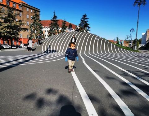 线性公园从市区座公交即可到达,公园旁边的建筑外观画满了涂鸦,很多红色的涂鸦非常冲击视觉。公园的地面上做了很多白色的线条,没有交叉,在这里拍照美美哒,必打卡景点之一。