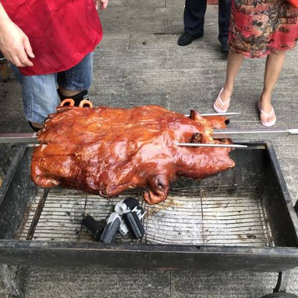 湖水比较清。离县城大概,嗯,五公里左右离县城大概,嗯,五公里左右。湖水比较清。2019年2月29日D3:兴义至巴马,晚餐在巴马赐福湖边吃巴马烤香猪,河虾,运气好买到刚网到罗非湖鱼当场加工。