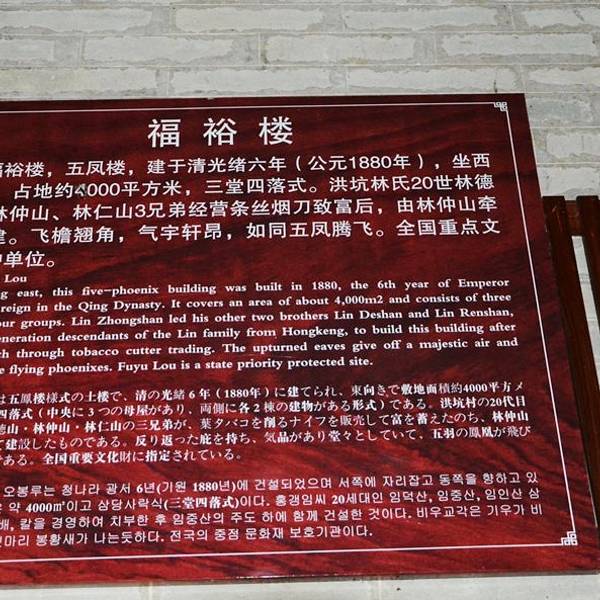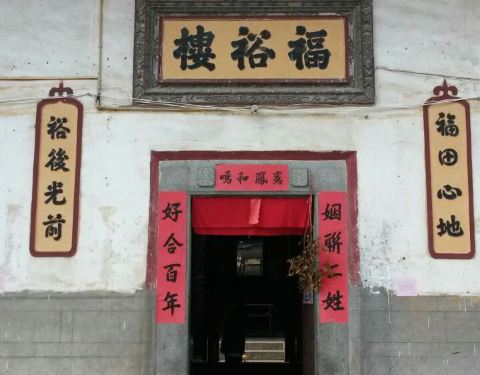 福裕楼始建于1880年,其主楼的中轴线上前低后高,两座横屋,高低有序,主次分明福裕楼始建于1880年,其主楼的中轴线上前低后高,两座横屋,高低有序,主次分明。楼前有三个大门,在主楼和横屋之间有小门相隔,十分的大气!