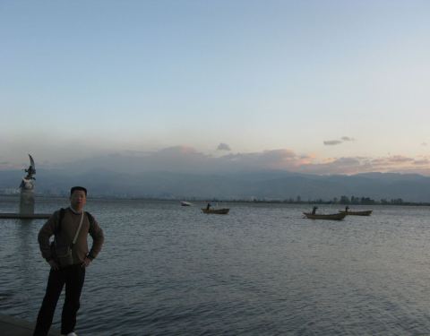 傍晚我到西昌最著名的邛海边观赏晚霞(免费),可惜多云,天色暗淡(也没看成著名的“邛海月夜”)
