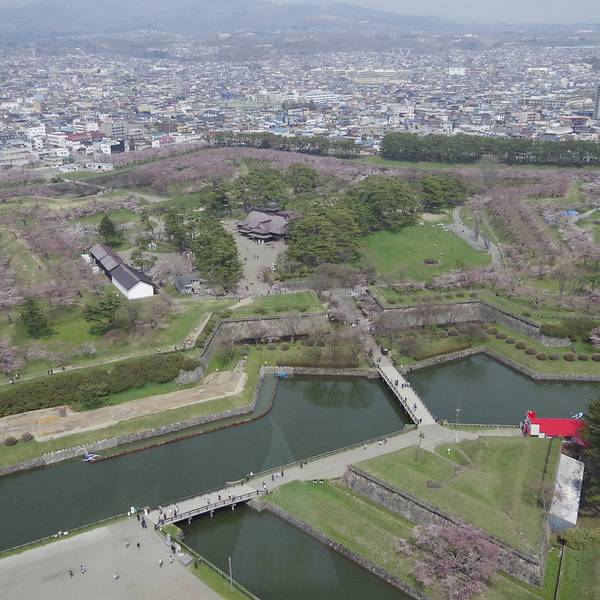 这里早樱已经盛开 非常漂亮 樱花分布设计得很巧妙,分上下两层,犹如仙境一般形状非常特别的函馆五棱郭公园的樱花,也是新选组副长土方岁三战死的地方。这里早樱已经盛开 非常漂亮 樱花分布设计得很巧妙,分上下两层,犹如仙境一般
