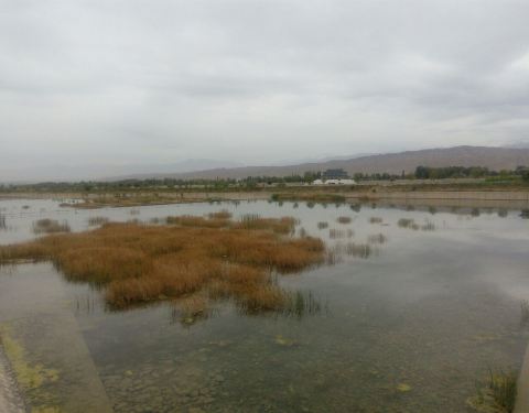 这里是嘉峪关市新建的面积最大的湿地公园,湖是人工修建的,到了晚上有喷泉和水幕电影