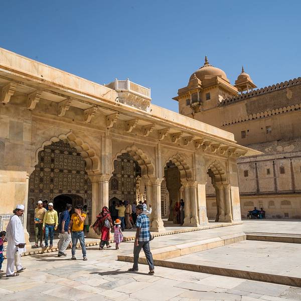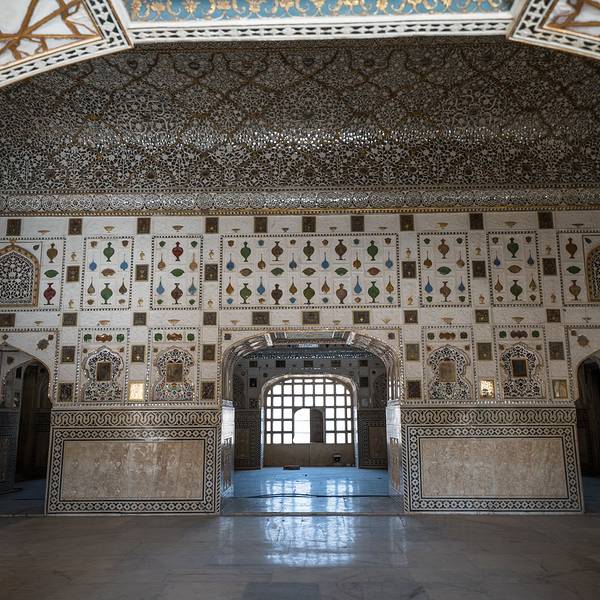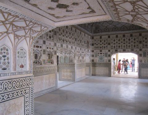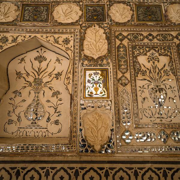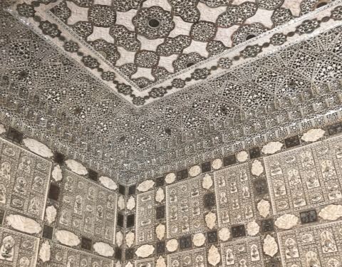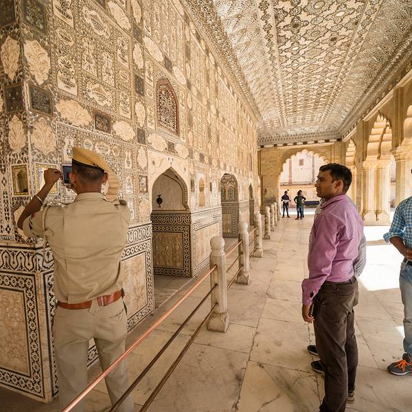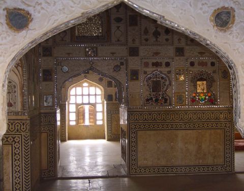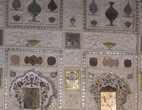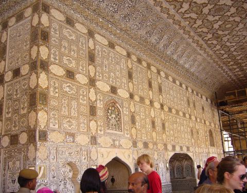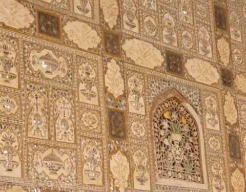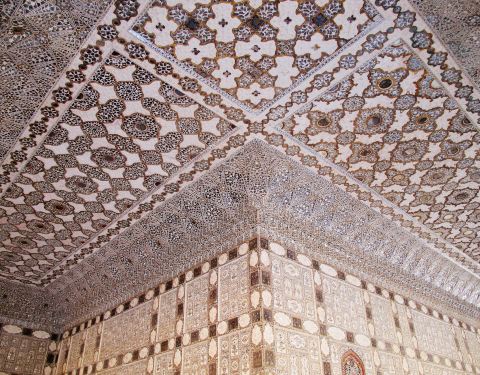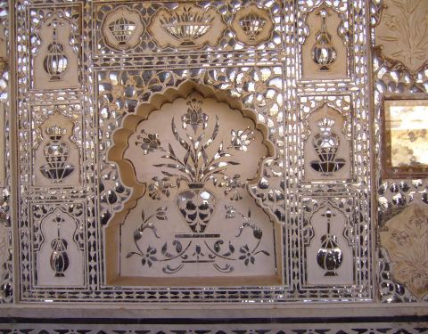 精致的镜片图案吸引来自世界各地的游客在此观赏、拍照镜之宫是斋普尔琥珀堡著名的宫殿,由细小镜片和宝石镶嵌的精美图案令人叹为观止。精致的镜片图案吸引来自世界各地的游客在此观赏、拍照。