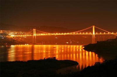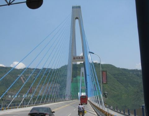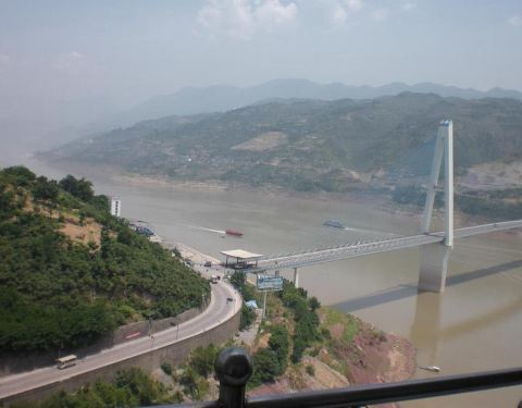 夔门大桥位于重庆市奉节县夔门峡口的长江大桥,长893米,宽20.5米,两主塔高206米和211.6米