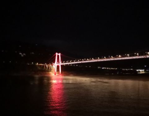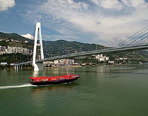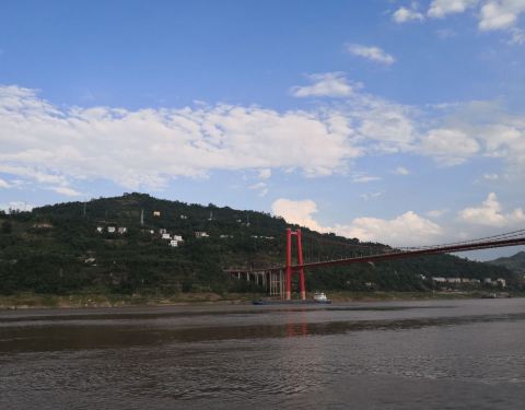 过了它之后就正式进入长江三峡的瞿塘峡,大桥十分的雄伟,犹如一道红色的长虹联通长江两岸,绝对的雄伟壮观