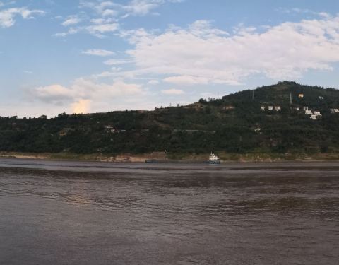 双向并排四车道,天堑通途摄美景《长江大桥跨夔门》滚滚长江万里奔,巍巍铁桥跨夔门,万吨巨轮桥下游,车水马龙桥上行。双墩擎起两里桥,双向斜拉A字形。双向并排四车道,天堑通途摄美景。