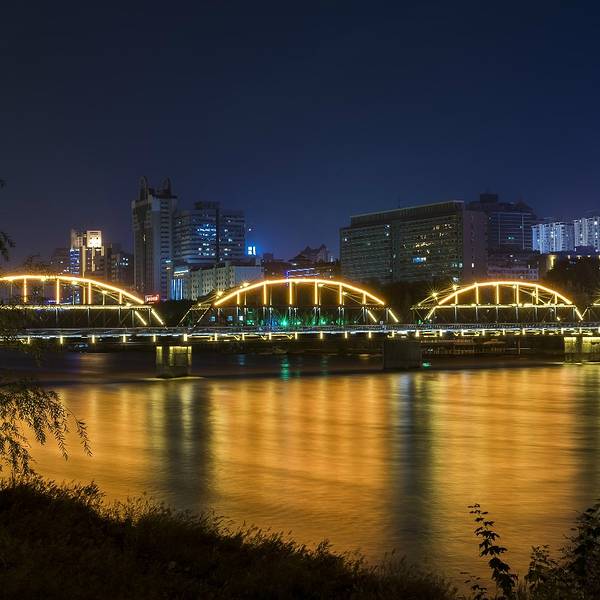 来黄河的第一天,和朋友出去吃了一顿火锅,兰州最好吃的百杨庄,吃得美美的一顿之后过来溜达了一圈,随手拍下了几张照片,感觉晚上的中山桥看上去有点上海滩外白渡桥的感觉,莫名想起情深深雨蒙蒙里面依萍跳江那一段,想想还好当时没在兰州拍这部剧,不然演员从中山桥跳进这黄河都洗不清咯公交也很方便,乘坐137路车到【中山桥】站下车即可到达。桥上的灯光很漂亮,造型也很独特,在百年前有这样的建造水平还是非常厉害的夜晚的【中山桥】也是人山人海,必须得用三脚架长曝光才能把人给虚掉。不过这里毕竟是兰州的代表景点,晚上也是夜景最美的地方,人多也是可以理解。其实晚上出来走一走,放空一下工作一天下来的烦恼与困惑,感受一下这座城市的脉动,看一下人来人往,看尽世间百态,也算是一种享受五月的天气还是有点冷,晚上得加件厚外套才能出来。,这段路的车开得都比较快,最好不要横穿马路,宁愿多走几步过天桥。黄河上横跨了数座大桥,最美的还得数中山桥,走在【滨河公园】上面远观中山桥,比在桥上看去的感觉还要美得多从这张照片也可以看出来兰州这些年的发展是真心不错,看不出是大西北群山之中的城市,反而有一种非常繁华的大都市感觉顺着【中山桥】边上的河滨公园走一走,看看黄河两岸最美的景色。唯一有点遗憾的是天气不太好,整个画面灰蒙蒙的,所以简单的溜达了一公里左右,便去开始美食之旅。至于吃什么就不用我多说了吧?晚上九点多钟当然是开始烤肉 展开