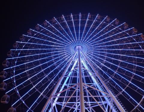 坐上摩天轮就是幸福,随着摩天轮渐渐转动,升起,人们在脚下,变得渺小,整个世界仿佛只有自己和身边的人,我们也就离天使更近一些。当摩天轮转到最高处的时候,虔诚的许下一个愿望,那样,你的那个愿望就会被天使听到,如果天使认为你是个好孩子,那么你的愿望就会得以实现.。