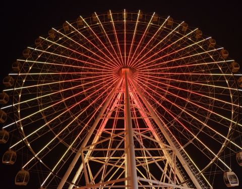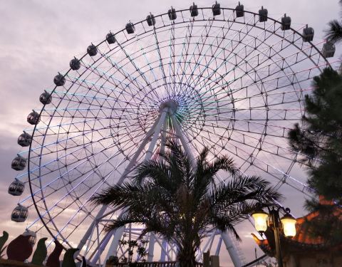 位于特色景点梦幻谷景区的摩天轮,非常精心的设计,能够在给游客带来高空的刺激感的同时,俯瞰景区全景。