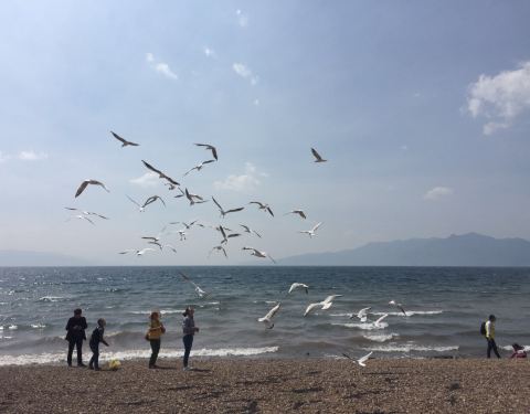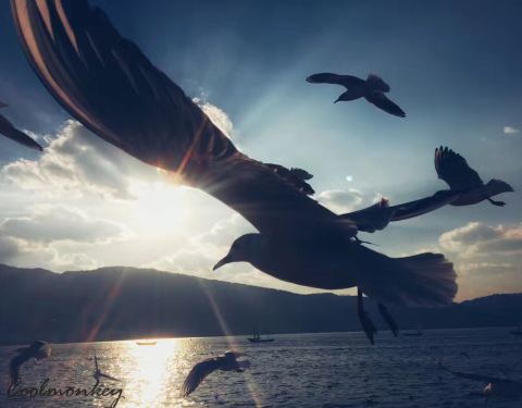 这里冬季到初春季节都有大批从北方西伯利亚到南方越冬的海鸥和其他候鸟在这里生活三到四个月,从每年12月一直持续到第二年3月,湖边的水里很多海鸥,买上点面包什么的喂海鸥,海鸥就会围绕游船飞舞!很是漂亮!还可以沿湖边的时光栈道欣赏湖边的湿地公园,都是免费的,有大片的芦苇、薰衣草等景观,附近有大片的荷花湿地景观。而这里因为是湖的北岸所以整个小镇是朝南的,所以在湖边早晨可以看日出,晚上可以看日落!靠近湖边还有几家有特色的客栈,可以坐在客栈一楼咖啡吧喝咖啡看湖景!