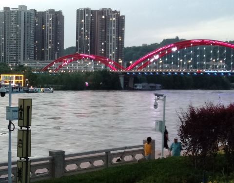 黃河兩邊城市建築明顯,南北狹窄,東西狹長,別有一番景色。大橋步行全程10分鐘左右黃河大橋,離水車博覽園很近,站在橋上,可以俯瞰黃河下游。黃河兩邊城市建築明顯,南北狹窄,東西狹長,別有一番景色。大橋步行全程10分鐘左右。大橋上游依次是元通大橋和中山鐵橋。