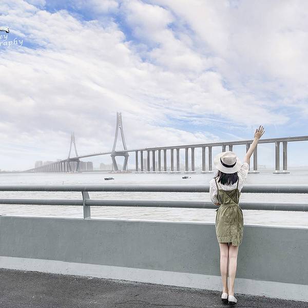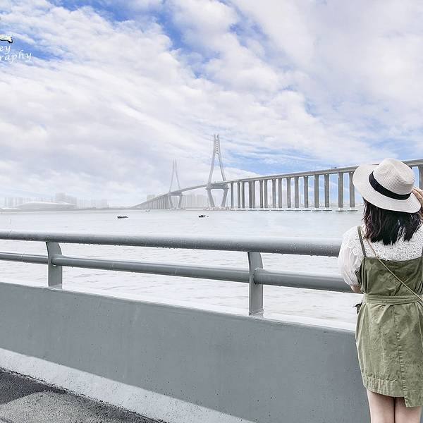 映衬着渺小的我……在这里拍照出片率挺高的,放眼望去,对岸建筑、越麻斜海湾、桥梁汇成一张好看的明信片…