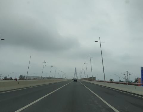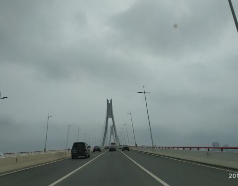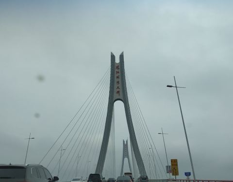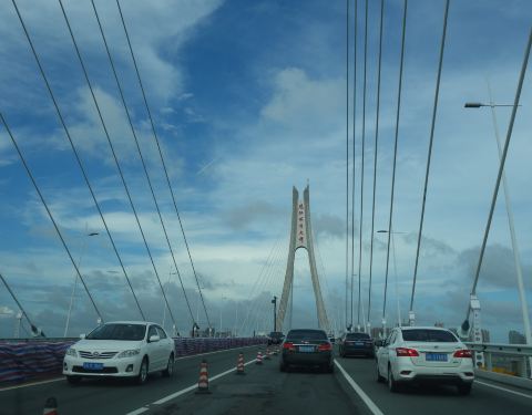 驶上桥面,车流量很大,一度堵在桥上,正好可以打开天窗看麻斜海湾的美景。--湛江海湾大桥