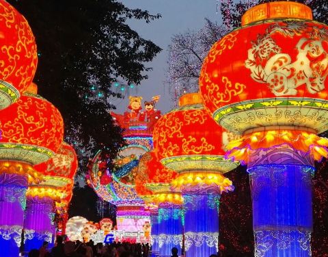 彩灯公园这里一直都是自贡人气很旺的地方,这里就在市中心啊,到了晚上这里的彩灯真的是非常的多而且非常的漂亮,很值得来看一看。