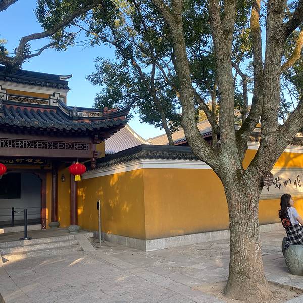 原本从不肯去观音后是要到梵音洞,坐巴士到法雨寺。 计划从法雨寺坐巴士再到梵音洞,周六巴士站等车的人实在太多。 法雨寺步行到梵音洞,依我们的速度估计得40分钟。 在纠结和走之间,路上遇到刚从梵音洞下来的人,咨询了下步行时间。 对方告知善财洞没有开放,我们果断放弃步行,继续回到法雨寺等巴士去西天。 闺蜜说西天景区是普陀山的最后一站,因为取完经最后就是到西天了。 西天景区就在普济寺的边上,按行程走的话其实从普济寺走完可以直接到西天顺畅些。磐陀石位于梅福庵西面不远处,是由上下两块石头垒叠而成。 上面那块石头上平下尖,看似重心不稳却稳如磐石, 年年台风都对它没有影响,十分奇妙。 石头上有明代抗倭将军侯继高题写的“磐陀石”三字, “石”字上多了一点,据说侯将军题字时,大石左右摆动,摇摇欲坠, 于是他在石字上加了一点,磐陀石便稳稳当当地固定住了。 观音说法台、二龟听法石距离这里都不远,步行即可一并游览。从西天下来回到普济寺,晚上普济寺传灯法会。 传灯法会普济寺举行,不开放,香客只能在外面看。 普济寺应该是普陀山最热闹的地方,周边啥都有。 诚心斋,是在普陀山里吃得比较丰富的自助餐了。 吃完饭原计划是想等着看看晚上7点的传灯法会, 三个人等着等着,没等到7点决定回民宿拿行李去码头。 说来就来,说走就走。随缘而来,普陀山的行程就此圆满了。 一切都刚刚好,越来越好。