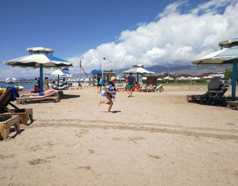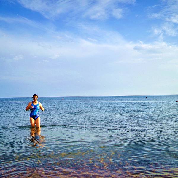 湖水的颜色,与 马尔代夫 深海区水颜色毫无差别。沉思的Royal DianaDiana 你看,又拍到巴鲁的傻样了~Wage水性好,掉下去可以自己游回来。游船驶到湖中央,会短暂停留,可以下去游泳,钓鱼,拍照。一图以蔽之。Photo by 巴鲁上次去伊塞克湖游泳,冻的丝丝哈哈,这次水温更低,可是Must do的事情,那就硬着头皮下水。有了有度数的泳镜,我可以游的更安心些。Photo by 巴鲁酒店前面湖边的沙子非常细腻,乌鸦留下一串脚印。早上六点半左右,我会到湖边坐着,拍照或者发呆,看它水波不兴。调试无人机的一米八巴鲁伊塞克湖的水质与沙滩质量,完爆某些大热的 东南亚 海滩。Photo by 巴鲁栈桥前方就是我们住的酒店。