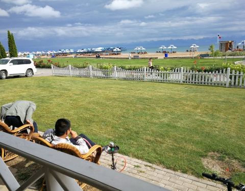 住在伊塞克湖北岸的一家别墅酒店,酒店背山面湖,空气格外清新,湖水在夕阳下波光粼粼,孩子们踩着滑...住在伊塞克湖北岸的一家别墅酒店,酒店背山面湖,空气格外清新,湖水在夕阳下波光粼粼,孩子们踩着滑板嬉闹着,悠闲而宁静的夏天。