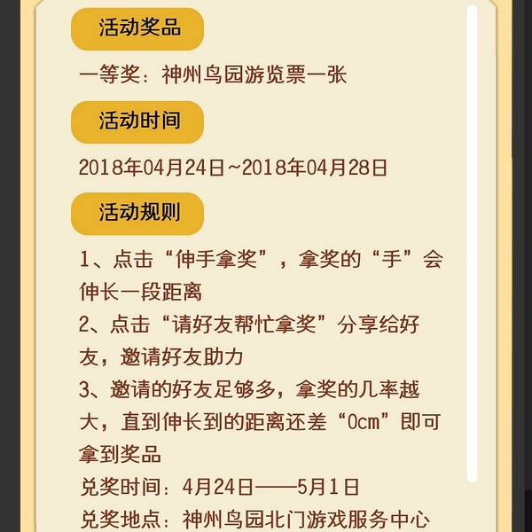 差评,绝对的差评,就这1颗星还是看在“神州”的面子上给的。4月中旬说有免费领取门票活动,于是各种转发终于满足条件能够领取门票了。坐了几个小时火车终于到了漯河,到了这神州鸟园,还真是个“鸟园”,真是“...