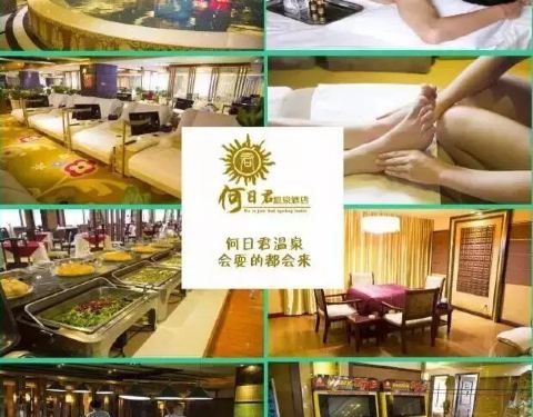 何日君温泉是成都市内目前人气排行前三的温泉会所。特色集商务酒店、戏水泳池、餐饮美食、休闲娱乐、功夫茶道、球艺棋牌、豪华影院、商务中心、日式休眠等。周末休假与情侣,朋友,家人一起休闲的不错选择。并且何日君的美食特别多。汇集了南北各种正餐小吃。泡完温泉,再来美美吃一顿,然后去做spa特别舒服