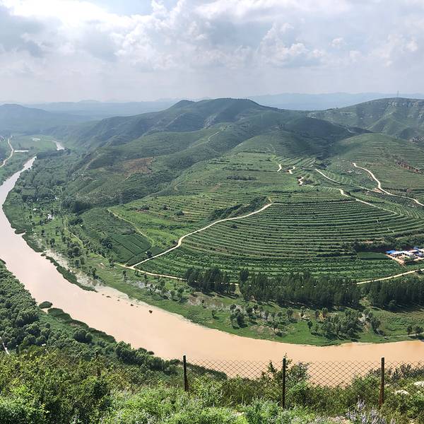 这个景区是开放式,没有开发。开车转山到山顶才能看到风景。 山顶上有两座亭子,登上亭子,俯瞰C字型的河湾。风景开阔明朗,吹着山风很凉爽。 因为离旁边的村子很远,也没有公共交通设施,建议自驾来这个地方旁边就是野山和农田。