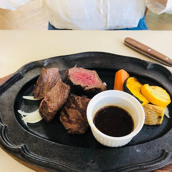 又被导航坑了,又没有导到正门,我们停在一处挺偏僻的后门,穿过牧场走到餐厅还是挺长一段路的,后面吃完饭又倒回这里取车,气死了。 牧场里有很多可爱的小动物,小矮马还梳上了麻花辫。这个景点不算是非来不可的,但绝大多来都是为了农场内的餐厅。食物以牛排为主,价格都比较不菲,我们点了一份较便宜的,还有一份咖喱饭,别看这咖喱饭黑乎乎的不太好看,味道还真是不错,牛排也好吃。