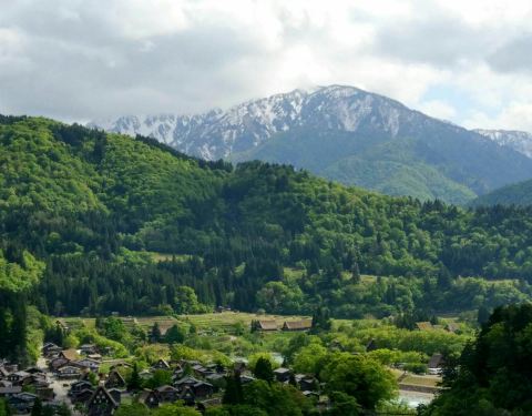 在展望台上俯瞰整个白川乡荻町合掌造村落,白山的峰峦一览无余,白川乡的宣传册上就印着这样的美景。在这里可以欣赏到白川乡四季的自然风光。特别是冬天路灯亮起时,众多的游客蜂拥而至,很是热闹。