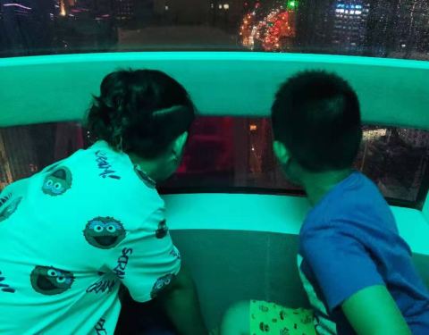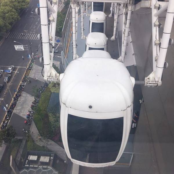 一直想去的一个摩天轮,位于静安大悦城的8楼,以前乘摩天轮还蛮网红的,现在周边都在施工,所以景色并不好。转一圈是12分钟,车厢内是有空调的。