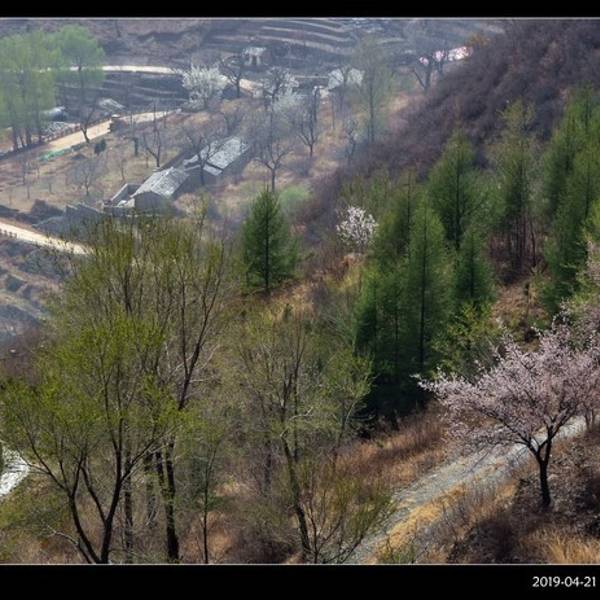 沿红井路盘山而下又来到蒲洼乡东村,梯田依山层层叠叠,山洼处小村落宁静清幽,梨花已经过了盛花期,...