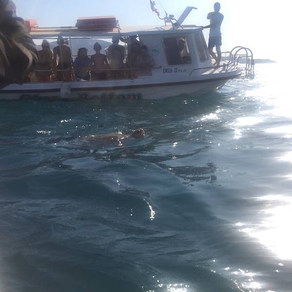 去海龟岛的路上看到的,白色的布,想到了加勒比海盗。海龟浮出来呼吸海龟岛是一块大石头,周围的山洞上岸的沙滩很粗糙,捡了2块夹心石头。我想,所谓的水也就是这样吧。附近有一个小岛,可以从桥上过去完美的小阳...