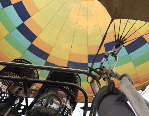 即使没有蓝蓝的天,也可以有棒棒的心情!老板人很好,我们就两个人,他也把热气球搬出来了。绚丽的色彩立刻照亮了天空,满满的幸福感!
