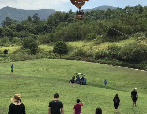 热气球俱乐部原以为国外才有,没想到这里也有一个,飞大概10分钟左右,3根绳子拉上只能停在一个高度,下来后工作人员会热心的帮忙拍照,很会抓拍,那边是高尔夫场地,人少空气好,值得一去!