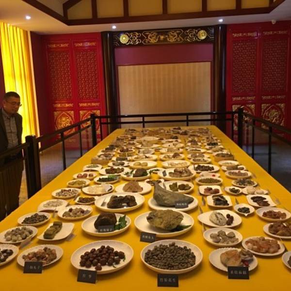 博物馆除了有4项获大世界吉尼斯之最的萤石展品外,还收藏了1万多件萤石晶体,惟妙惟肖的萤石“满汉全席”