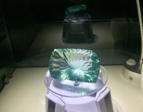 武义高铁站乘1游1路公交车清水湾下车即可,博物馆就在清水湾马路对面,在前面的十字路口右转从正门进入,博物馆工作人员很热情,一楼是有关于萤石的开采历史和矿石标本,二楼有古生物化石,出口附近为珠宝首饰展厅和大师工作室,还有各种小礼品以供选购