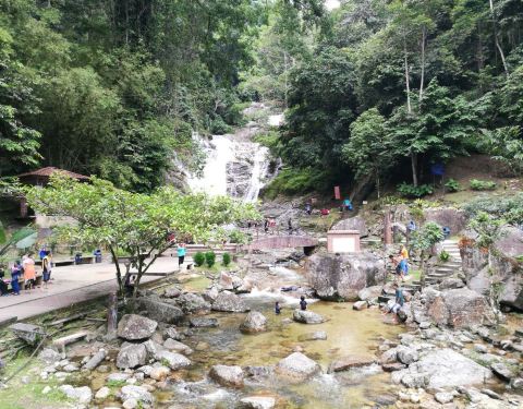 所谓的“瀑布” = Waterfall(英语)= Air Terjun(马来语),当地华人称之为“情人瀑布”。从金马伦市区开车经过弯弯曲曲的蜿蜒小路,大约花上30分钟后才能抵达。平常人不多,瀑布景观还是蛮值得一看一看的。水流蛮急的,不建议下水,可以站在岸上一览瀑布美景。停车场不收费,绕了一圈下来30分钟就可结束。总个来说,到金马伦,不来看这一瀑布确实有点可惜,还是值得一看的。