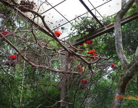 伊瓜苏鸟园位于伊瓜苏国家公园附近,这里汇集了了上百种各种鸟类,最有特色的是大嘴鸟,金刚鹦鹉和火烈鸟。 公园内设有五个大型的鸟笼,这些鸟笼可供游客进入最大限度的接近鸟类,其中一个专门供金刚鹦鹉栖息的巨型鸟笼里面有上百只体型硕大的金刚鹦鹉,很有意思。 其中一个巨型鸟笼中主要养的是各式各样的蝴蝶,以及之前只在书上看到的,体型最小的鸟类——蜂鸟,比有些蝴蝶的体型还要小,真是很神奇的感觉。