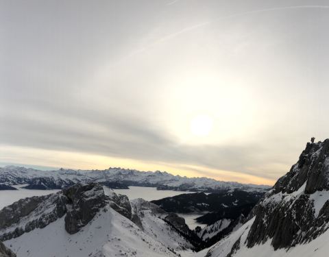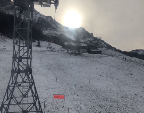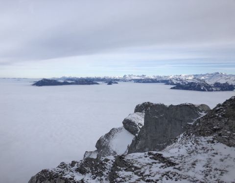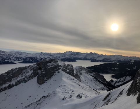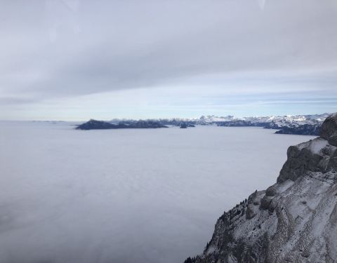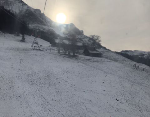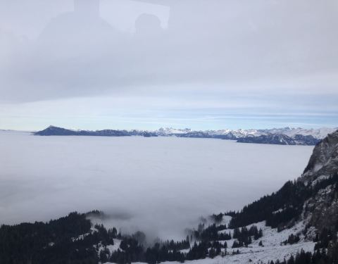 ...顶会看不见,结果到换乘的时候就看到超震撼的美景,山顶上远眺阿尔卑斯山脉的风景值得这么冷的天上去