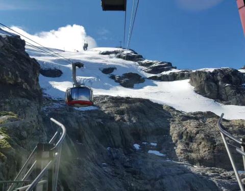 雪山的下面有安静祥和的小镇和高尔夫球场,看到这里就能够理解为什么那么多人喜欢打高尔夫球了,在运动的同时还可以欣赏美景,乘坐缆车到达雪山,干净洁白的雪山,建议带上太阳镜前往,因为实在太干净洁白了,可能会对眼睛有刺激,虽然带了墨镜,可还是时不时忍不住摘下来欣赏美景。