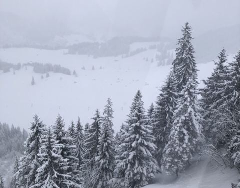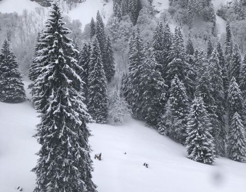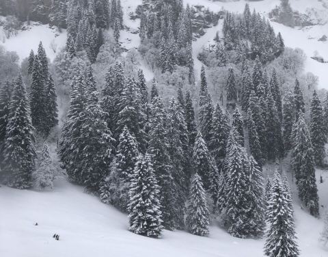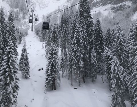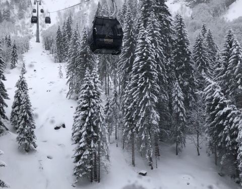 雪很厚,很纯净、坐缆车上山下山时大自然美景尽收眼底,特别是高大的雪松森林尤为震撼